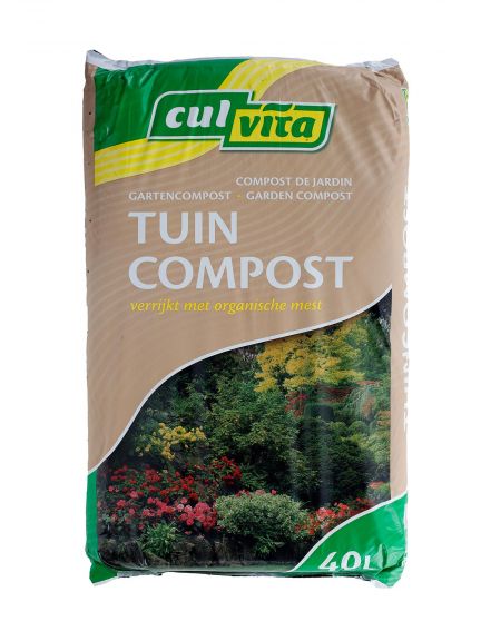 Culvita Tuincompost ontstaat na compostering van groen- en tuinafval. Het is rijk aan organische stof en voedingsstoffen. Door de hoge temperaturen die tijdens het composteringsproces worden bereikt is het vrij van ziektekiemen en verliezen onkruidzaken hun kiemkracht. Om een hogere voedingswaarde te bereiken is Tuincompost verrijkt met een organische meststof.